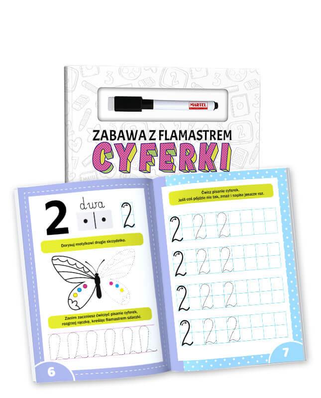 Kolorowa książeczka z serii “Rysowanie, zmazywanie” z wydawnictwa Martel poświęcona tematyce cyferek. Strony odpowiednio zabezpieczone powłoką zmazywalną by można było dokonywać poprawek i ćwiczyć wielokrotnie. Wesoła książeczka, zabawne wierszyki i kolorowe strony sprawiają że nauka jest przyjemna. Idealna na prezent, cudowna na wyjazd lub jako dopracowanie zajęć szkolnych w domowym zaciszu. Twoja pociecha będzie kreślić cyferki po śladach, bawiąc się i ucząc zarazem. W zestawie znajdziecie także odpowiedni pisak, który idealnie zmazuje się ze stronic.