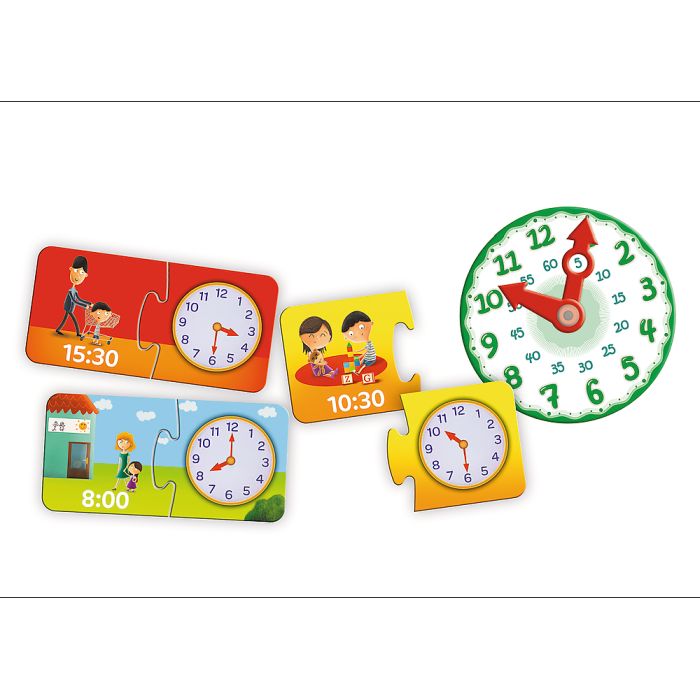 Zegar to niezwykła układanka edukacyjna, która jest w sposób przyjazny i zabawny wprowadza dzieci w świat nauki określanej godzinowo w analogowym, jak i cyfrowym. dodatkowo pomaga dzieciom przyporządkować różne czynności do wykonania por za dnia.