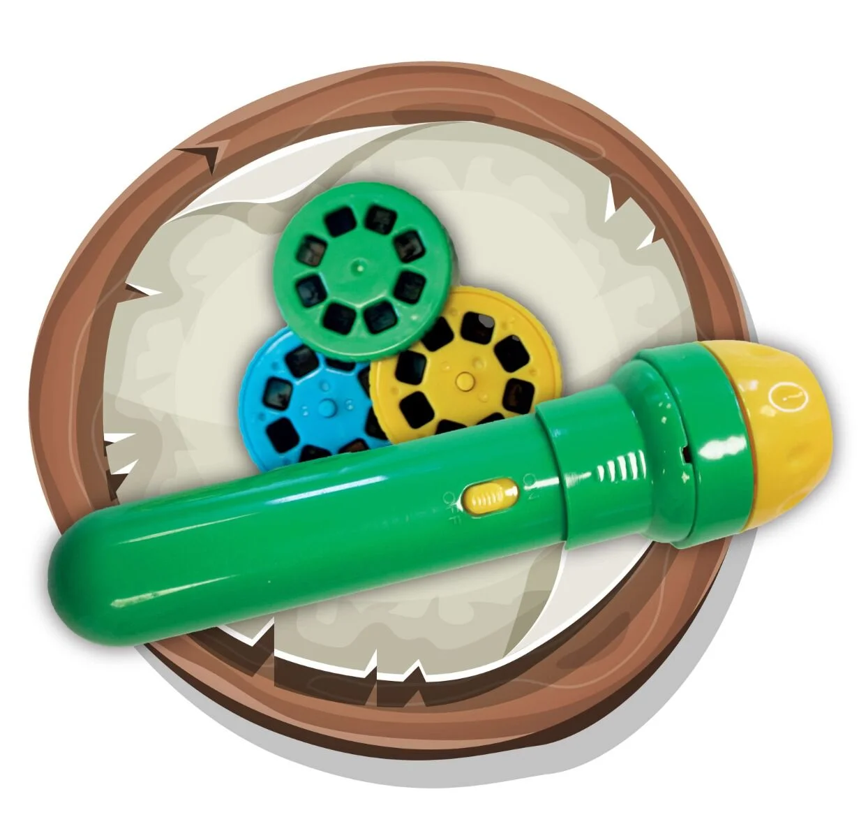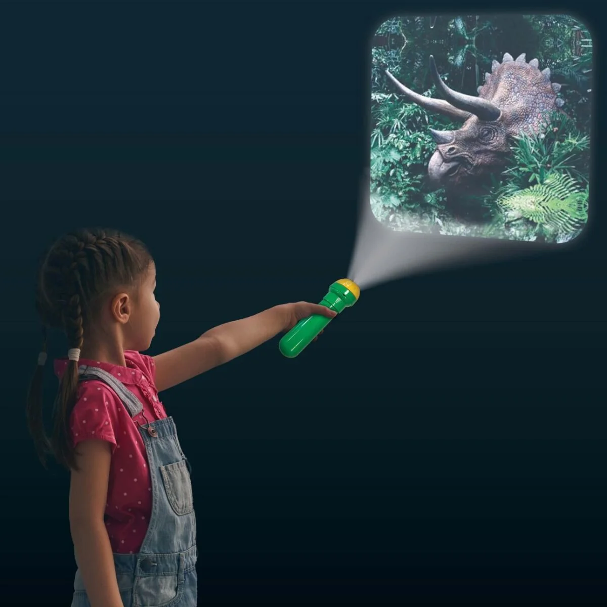 - Projektor dinozaurów z zestawem slajdów, umożliwiający wyświetlanie obrazów na ścianie.