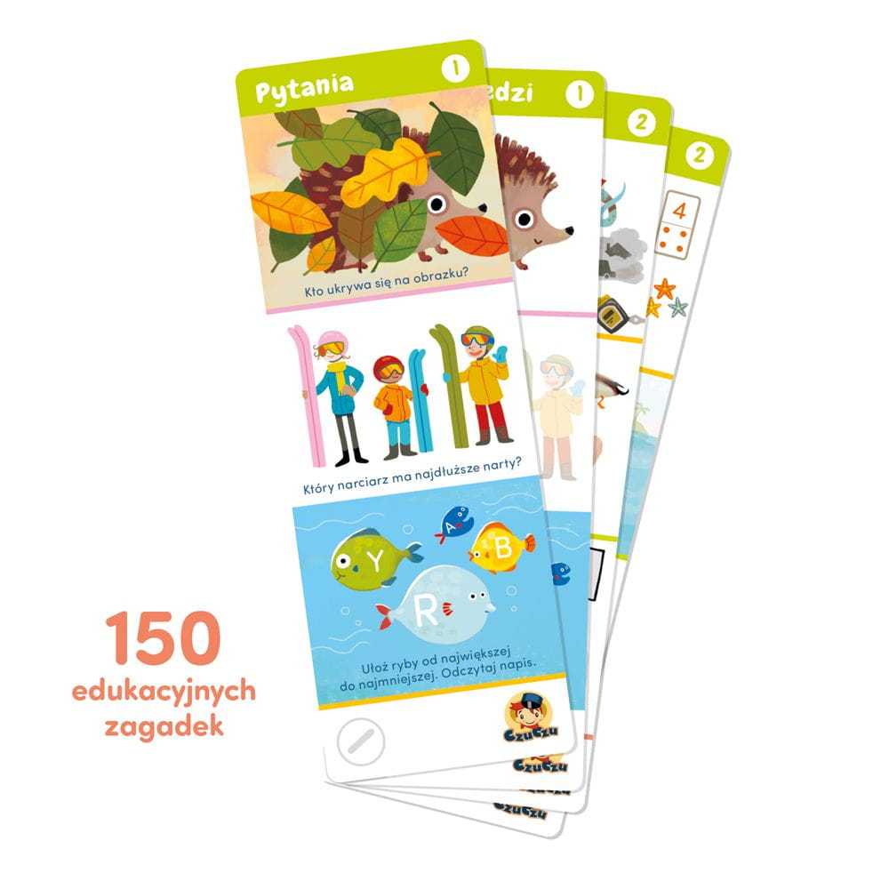 Zestaw Zagadki CzuCzu to aż 150 różnych łamigłówek i zagadek, które maluchy muszą rozwiązać we własnym zakresie lub w grupie. Dzięki temu ćwiczą swoją wyobraźnię, kreatywność i zdolność logicznego myślenia. Zagadki wpływają również doskonale na zdolność kojarzenia, pomagają także ćwiczyć kreatywne myślenie i spostrzegawczość.