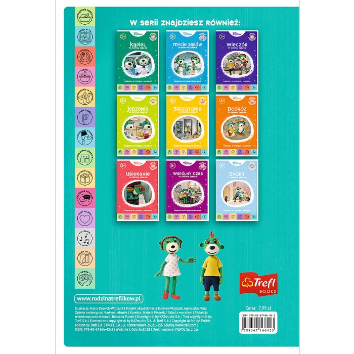 Seria "Rodzina Treflików. To świetna zabawa" zaprasza do interaktywnego świata, gdzie każde zadanie edukacyjne przeistacza się w radosną przygodę. Ponad 50 naklejek dołączonych do książeczki pozwala na jeszcze więcej możliwości personalizacji i zabawy, angażując dzieci w aktywne uczestnictwo w zakupowym zadaniu.