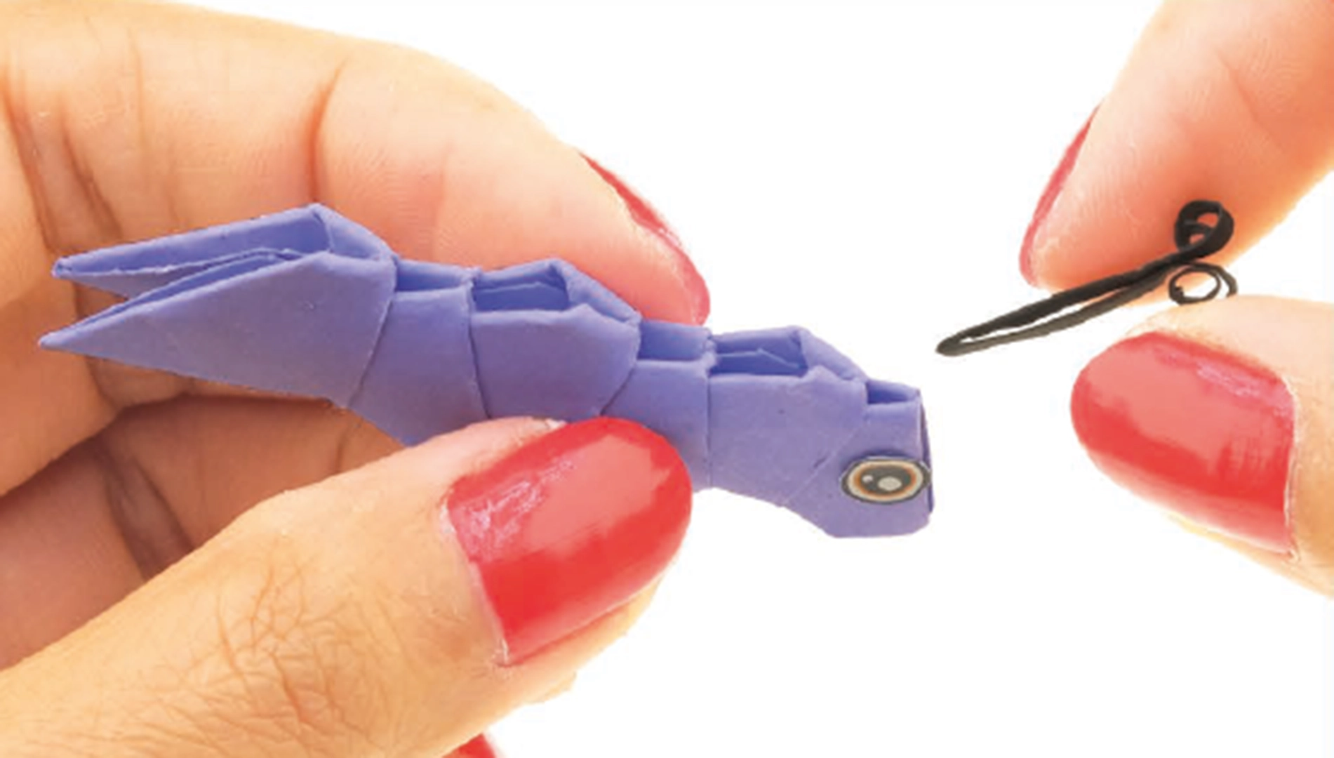 Zestaw zawiera 380 elementów papierowych, a także dodatkowe materiały, które pomagają w stworzeniu charakterystycznych detali kameleona, takich jak język, czułki czy oczy. Dzięki czytelnej instrukcji oraz materiałom video, proces składania jest przystępny zarówno dla dzieci, jak i dorosłych.