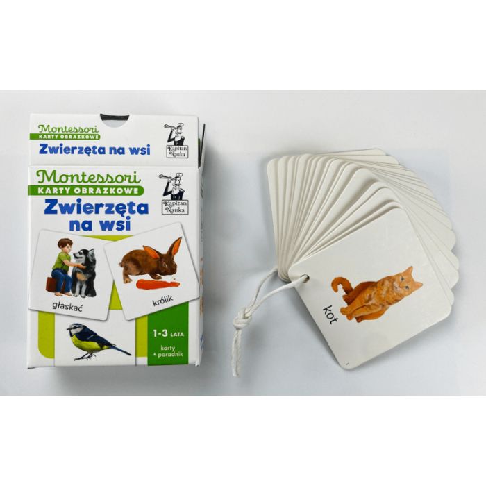 Na każdej z 34 kart umieszczono starannie wykonane ilustracje zwierząt, opatrzone ich nazwami. W zestawie znajdziesz takie zwierzęta jak pies, kot, sikorka, kaczka, koza i wiele innych, a także związane z nimi skojarzenia, które rozbudzają wyobraźnię i ciekawość dziecka.