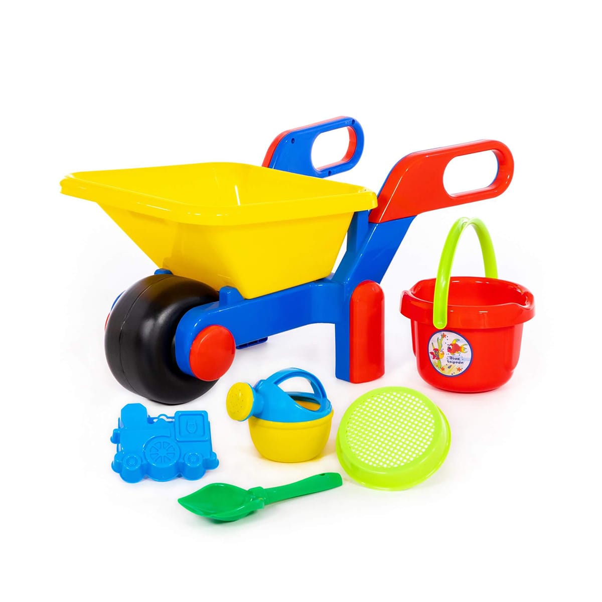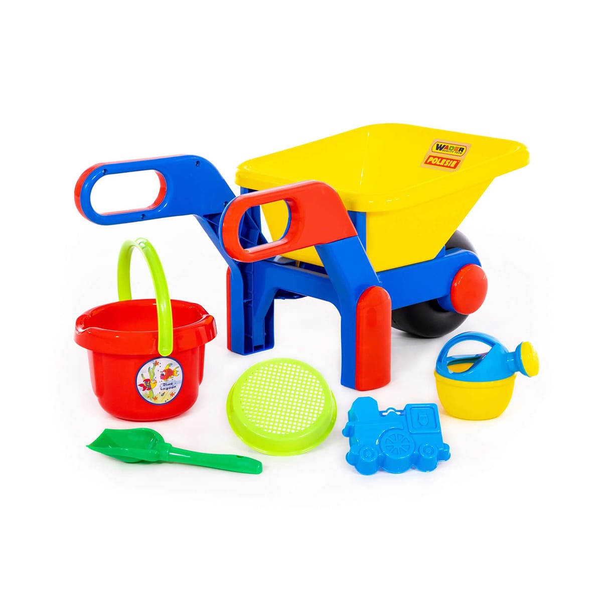 Taczka plastikowa do piasku lub ogrodowa dla dzieci + wiaderko, łopala, sitko, foremka i konewka